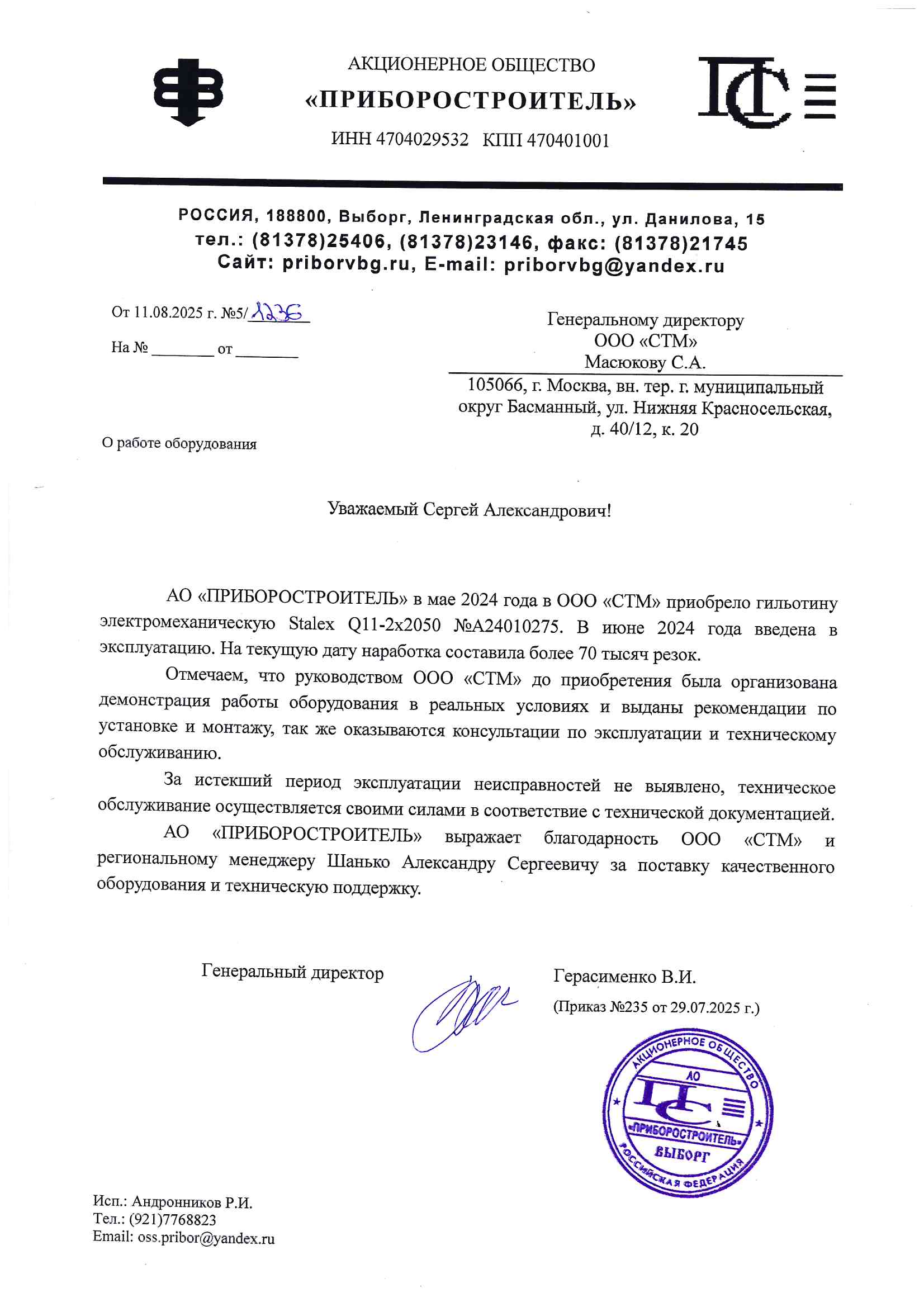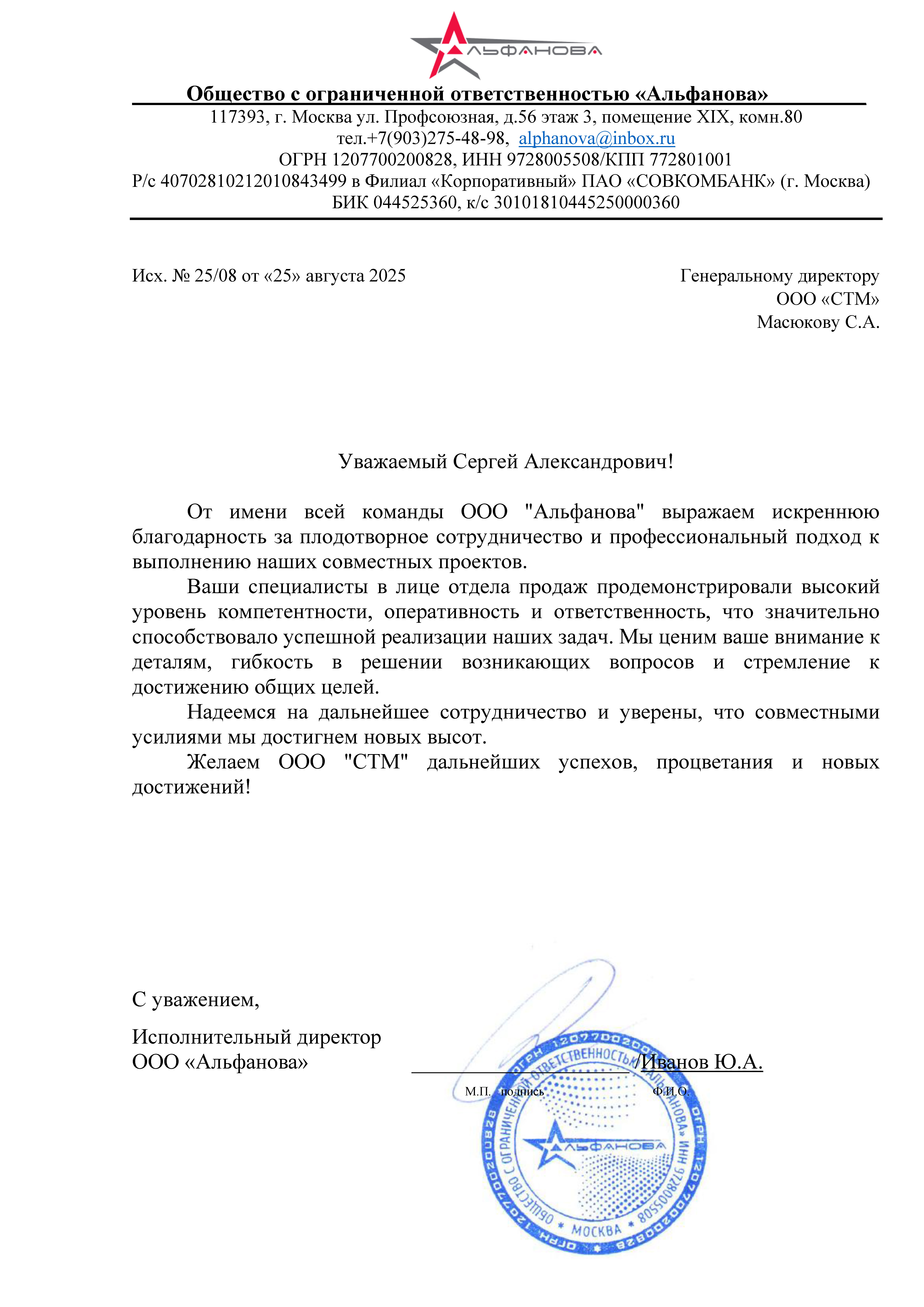 Благодарственные письма