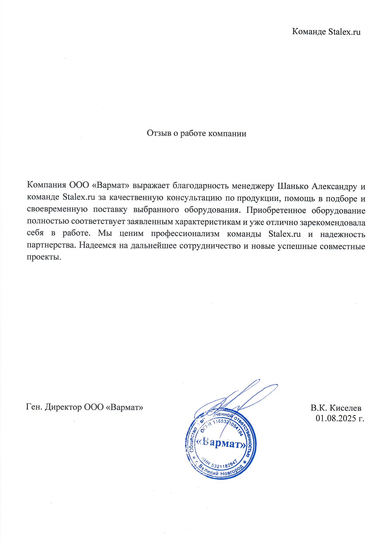 Напишите нам: zakaz@stalex.ru