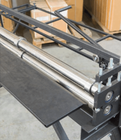 • роликовый стол (с двумя роликовыми валами и двумя направляющими упорами) для подачи рулона в станок с разматывателя или листа.