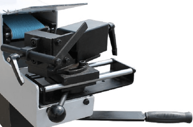 Два режима скорости 15 м/сек и 30 м/сек, передняя часть станка оснащена поворотными/подвижными тисками для обработки заготовок под углом и защитным экраном, задняя часть станка оснащена столом для упора заготовок под различными углами.